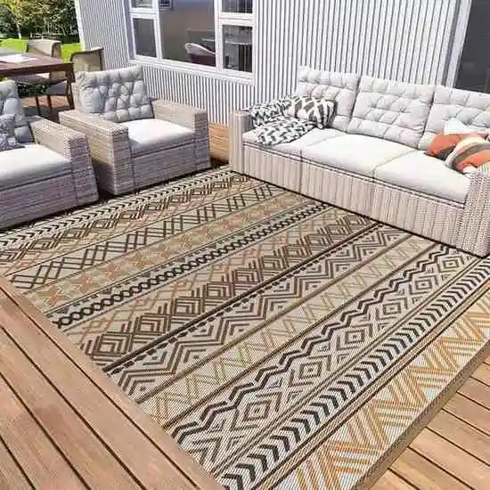 Our outdoor carpets Abu Dhabi are durable, easy to clean, and made for hot sun and dusty weather to turn any outdoor space into a cozy place to relax.