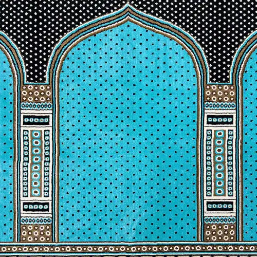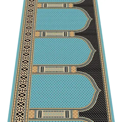 Blue Double Arch Mihrab Mosque Carpet features a striking blue design with elegant double arch mihrab motifs. Crafted for comfort and durability, it enhances spiritual focus and unity in prayer spaces.