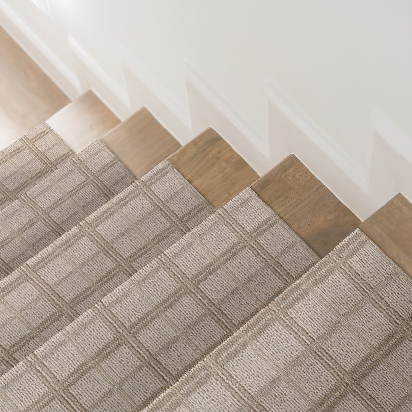 The Breeze Block Twine Stair Carpet combines a chic geometric breeze block pattern with a textured twine look, delivering durability, comfort, and a trendy, natural aesthetic for your stairs.