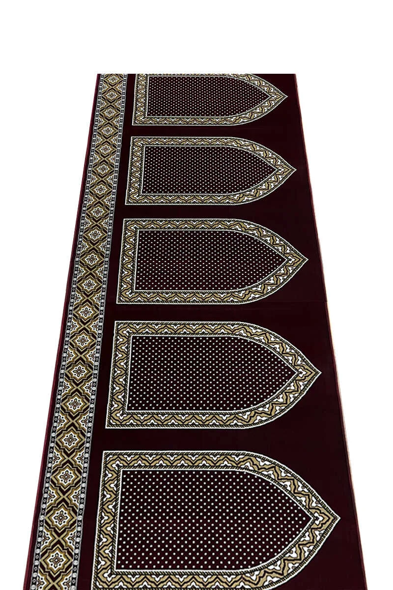 Classic Dark Red Mihrab Mosque Carpet features a deep red hue with traditional mihrab patterns, creating a warm and reverent prayer space. Designed for durability, comfort, and timeless spiritual elegance.