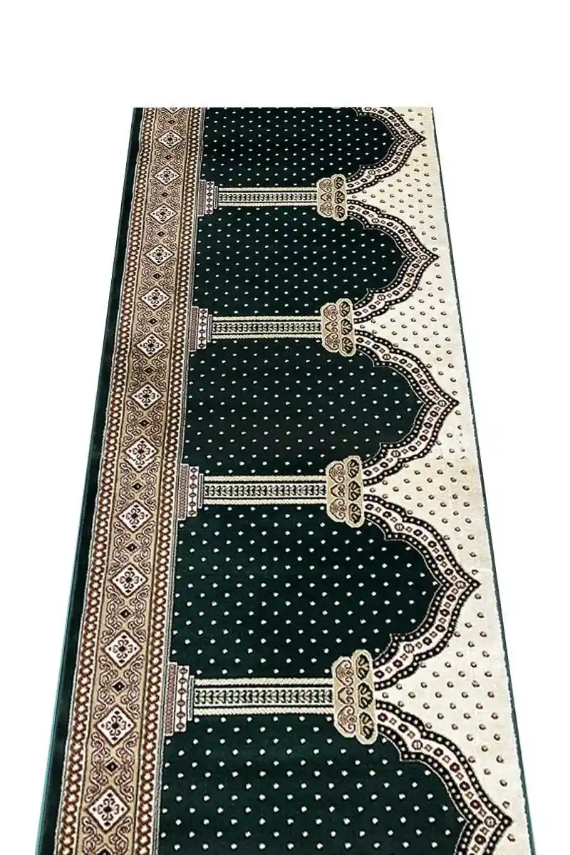Firdaus green masjid carpet made for mosque prayer areas. Soft surface, neat look, and suitable for regular congregational prayers.