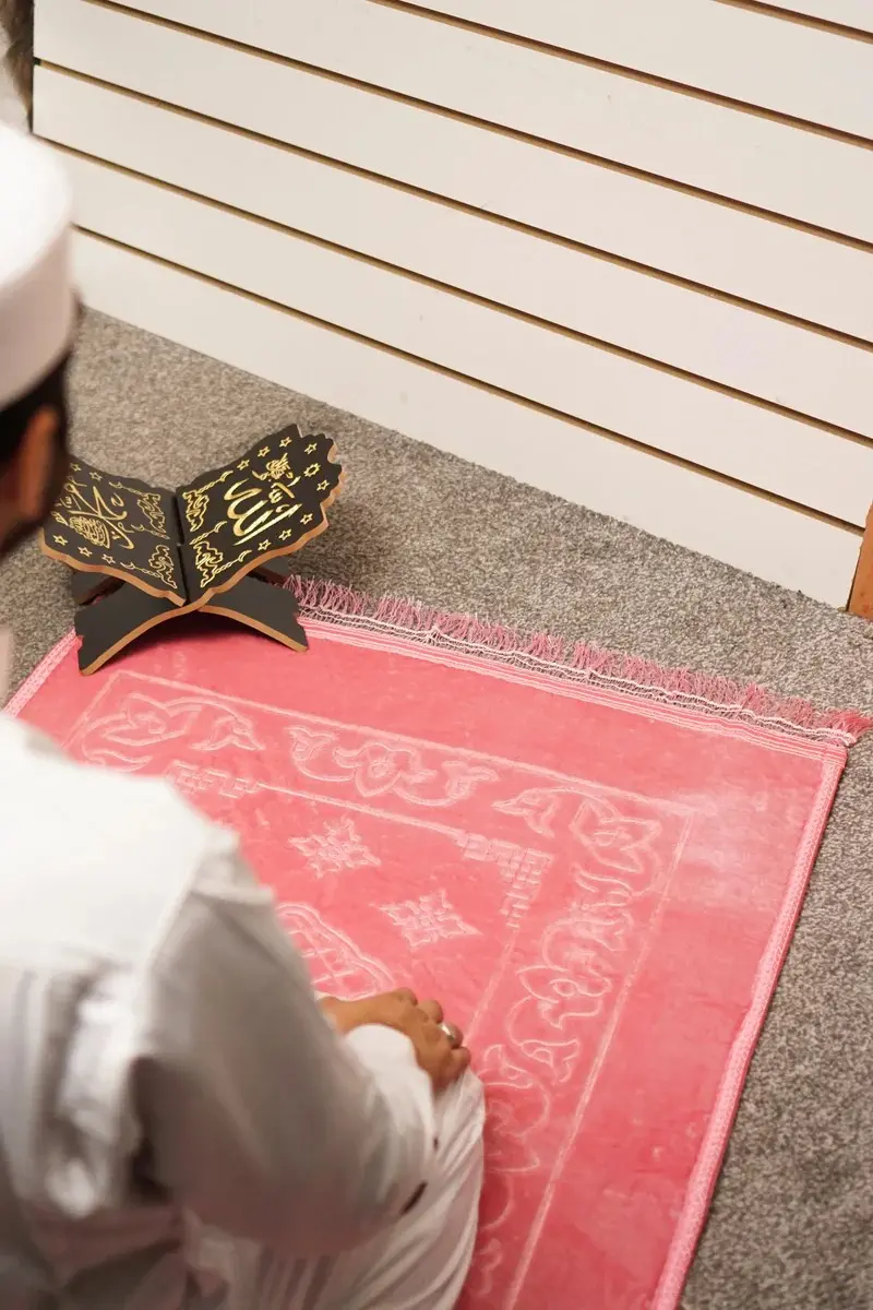 Soft velvet red prayer mat for comfort and daily salah. Ideal for prayer, meditation, Ramadan and Eid gift for women, men and kids.