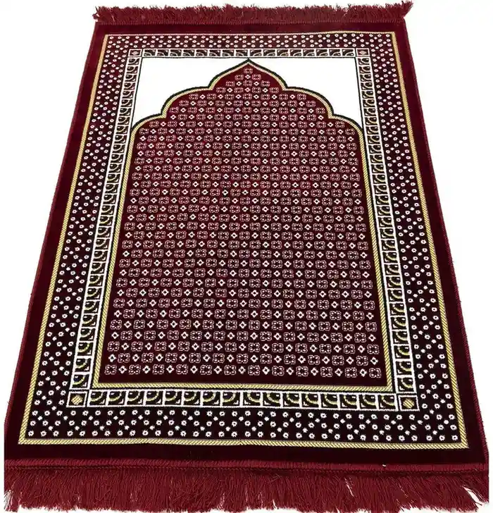 Velvet Red prayer rug with a soft feel and rose vine pattern. Comfortable for daily prayer and a nice choice for home use or gifting.